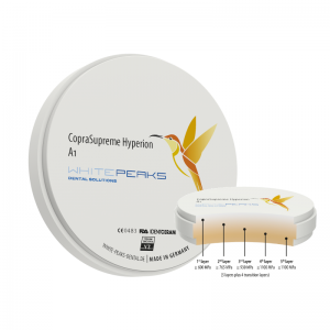DISCO IN ZIRCONIA MULTISTRATO,CON RESISTENZA ALLA FLESSIONE DI 1150 MPA E VALORE DI TRASLUCENZA 45%.